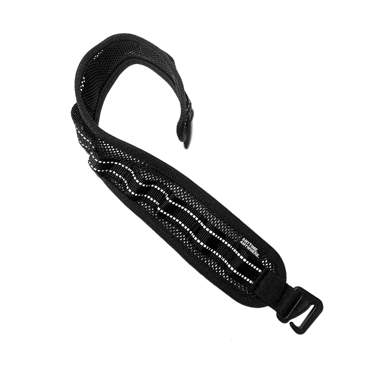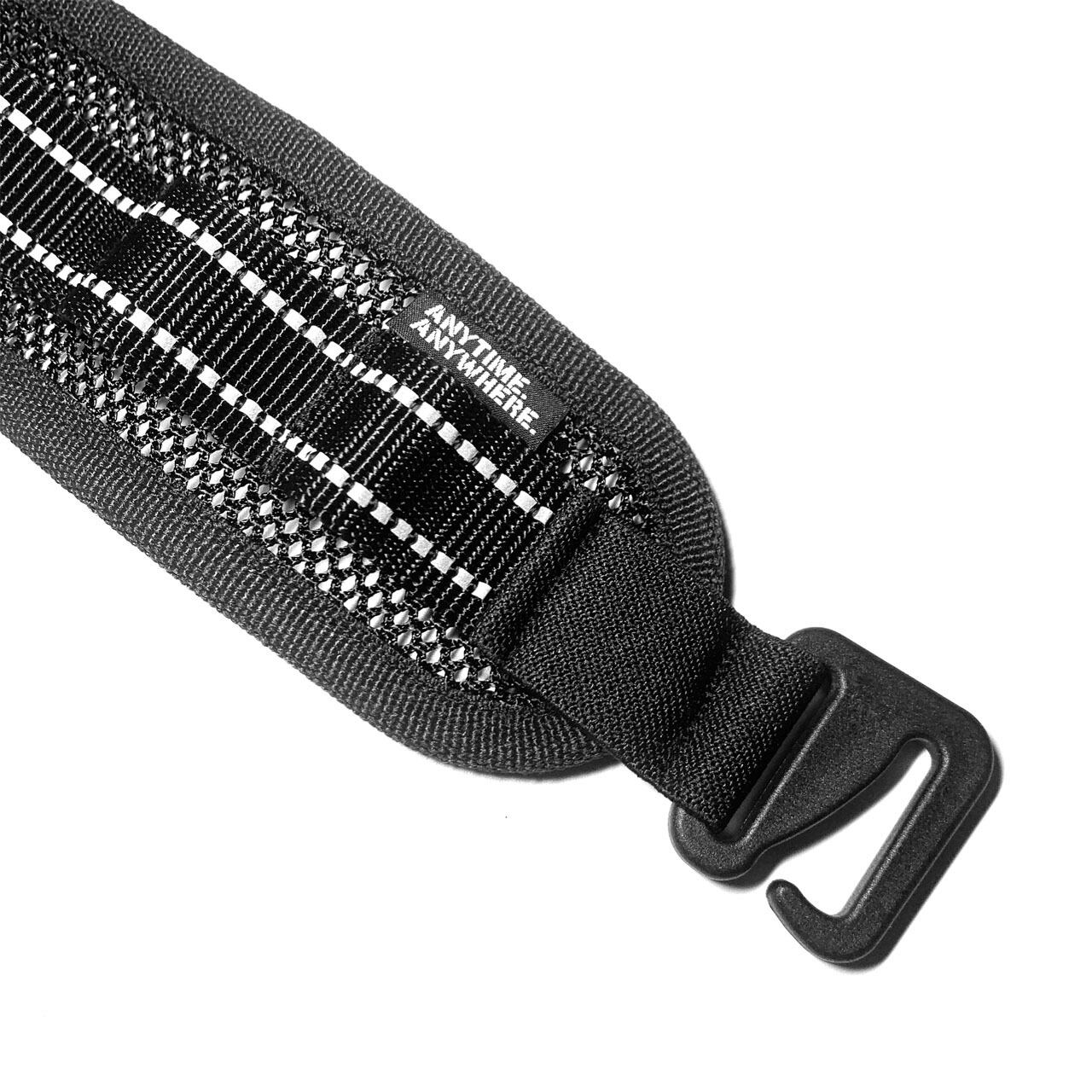 フックは軽量で高強度なイタリア2M社の樹脂製G HOOKを採用。このフックの付け根にはウーブンエラスティックウェビングを取り付けております。これにより若干の伸縮性があるのでフックを引っ掛ける際にさらにテンションをかけて締めることが可能です。