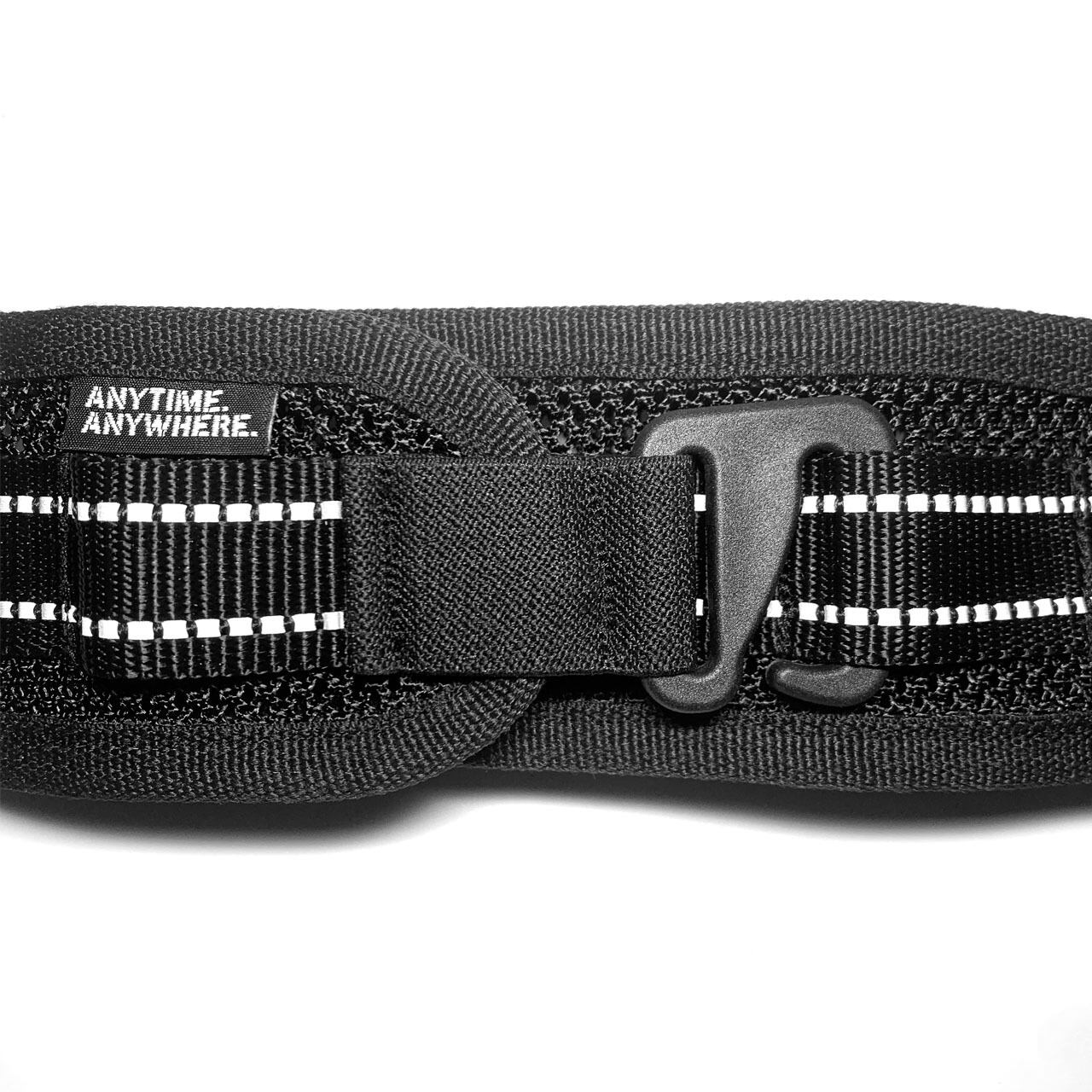 この”G-HOOK TROUSER STRAP”のベースとなる素材は軽量で高強度を誇るMIL-SPEC HEAVYWEIGHT MESHを採用。これに0.75inchのMIL-SPEC WEBBINGをパイピングとしてあしらい補強しております。そして反射材が編み込まれた1inchの国産高密度ウェビングでモールシステムを構築しました。またフックの脱着がしやすいようにモールは膨らませて縫製しております。またこのモールの膨らみによりベルトを巻いた際に適度なクッション性が生まれフィット感を高めてくれます。