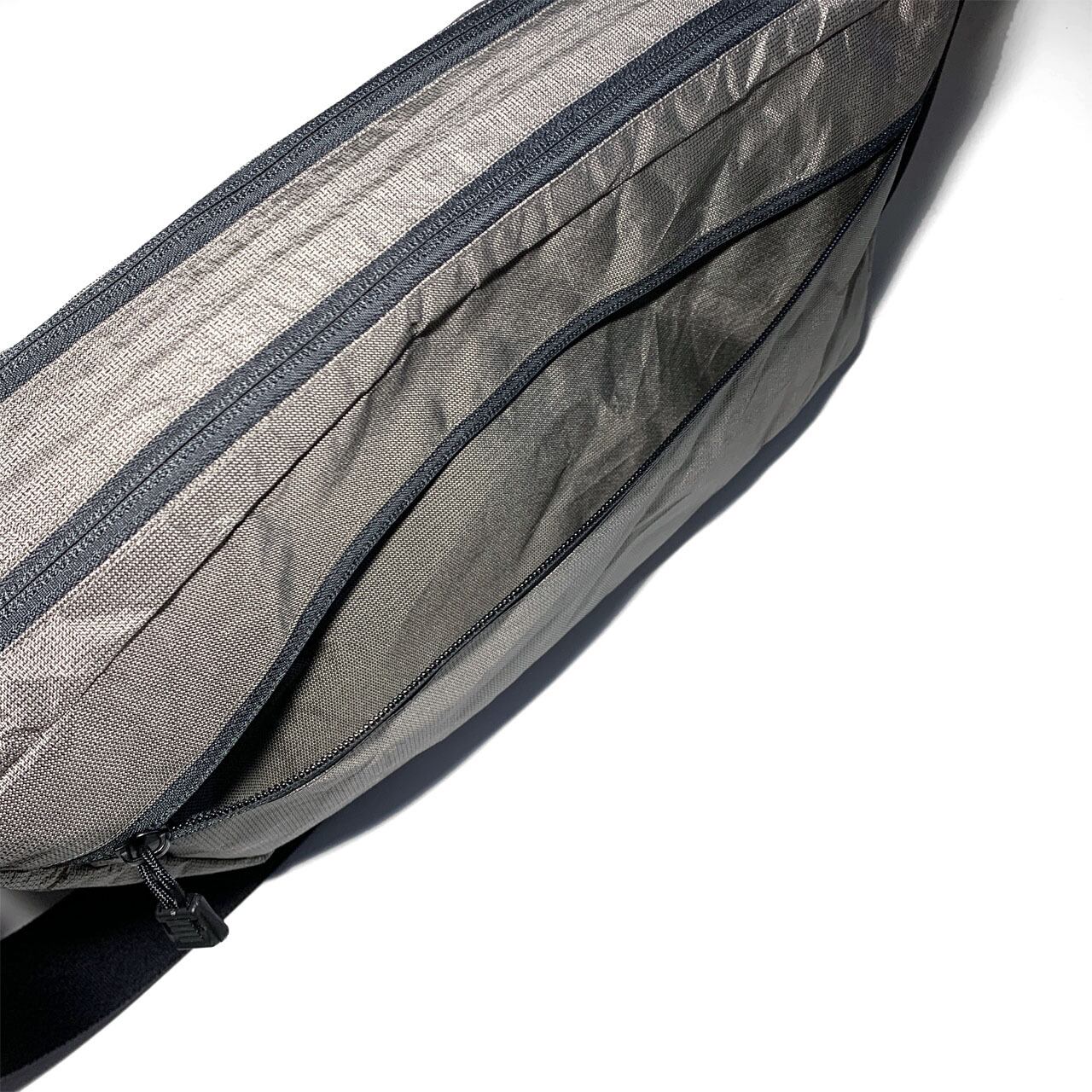 このDUAL ZIP SHOULDERはメインポケットを2本のジップで開閉することで入り口が広くなり収納したものを視認しやすいと同時に物の出し入れもしやすくなっております。