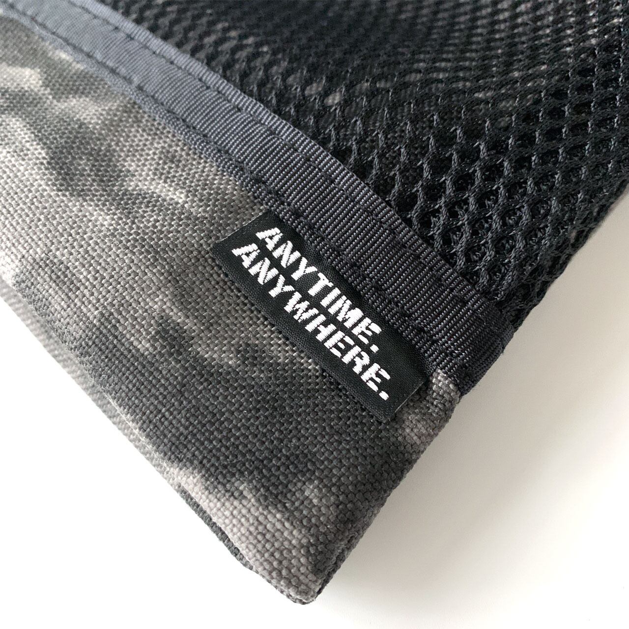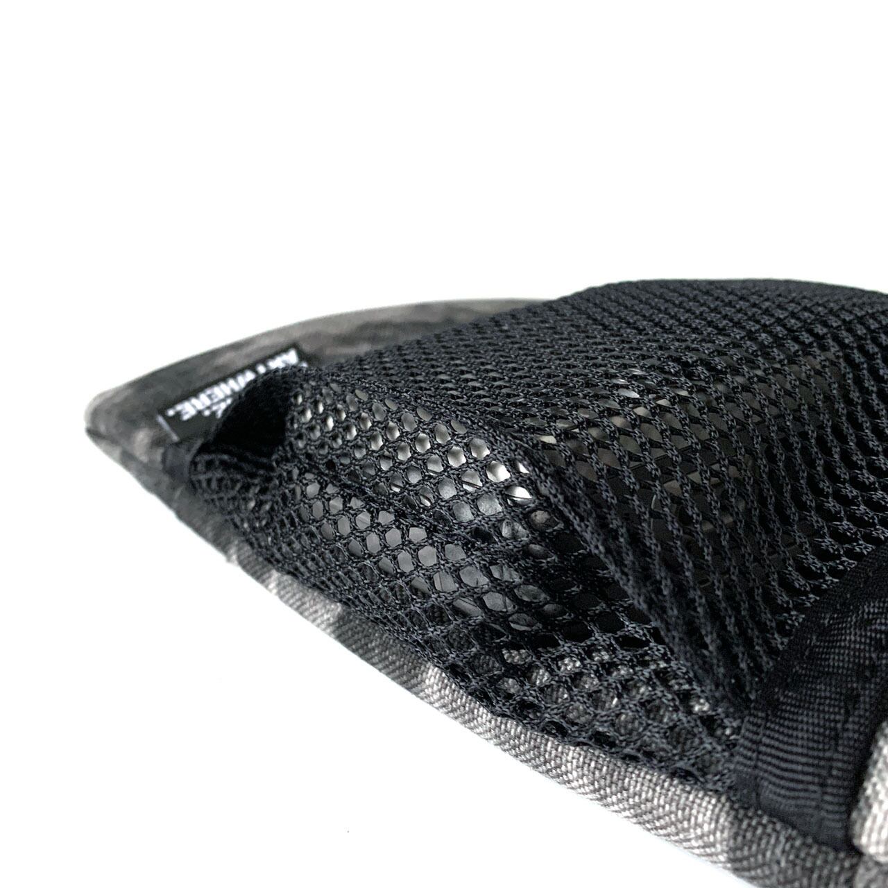 フロントのメッシュポケットは平面に見えますが、両サイドに3cmのマチを施し収納性を向上させました。またボトムにも4cmのマチを施しています。