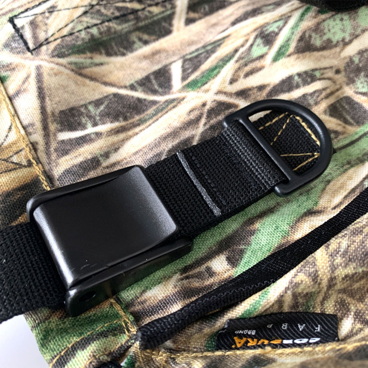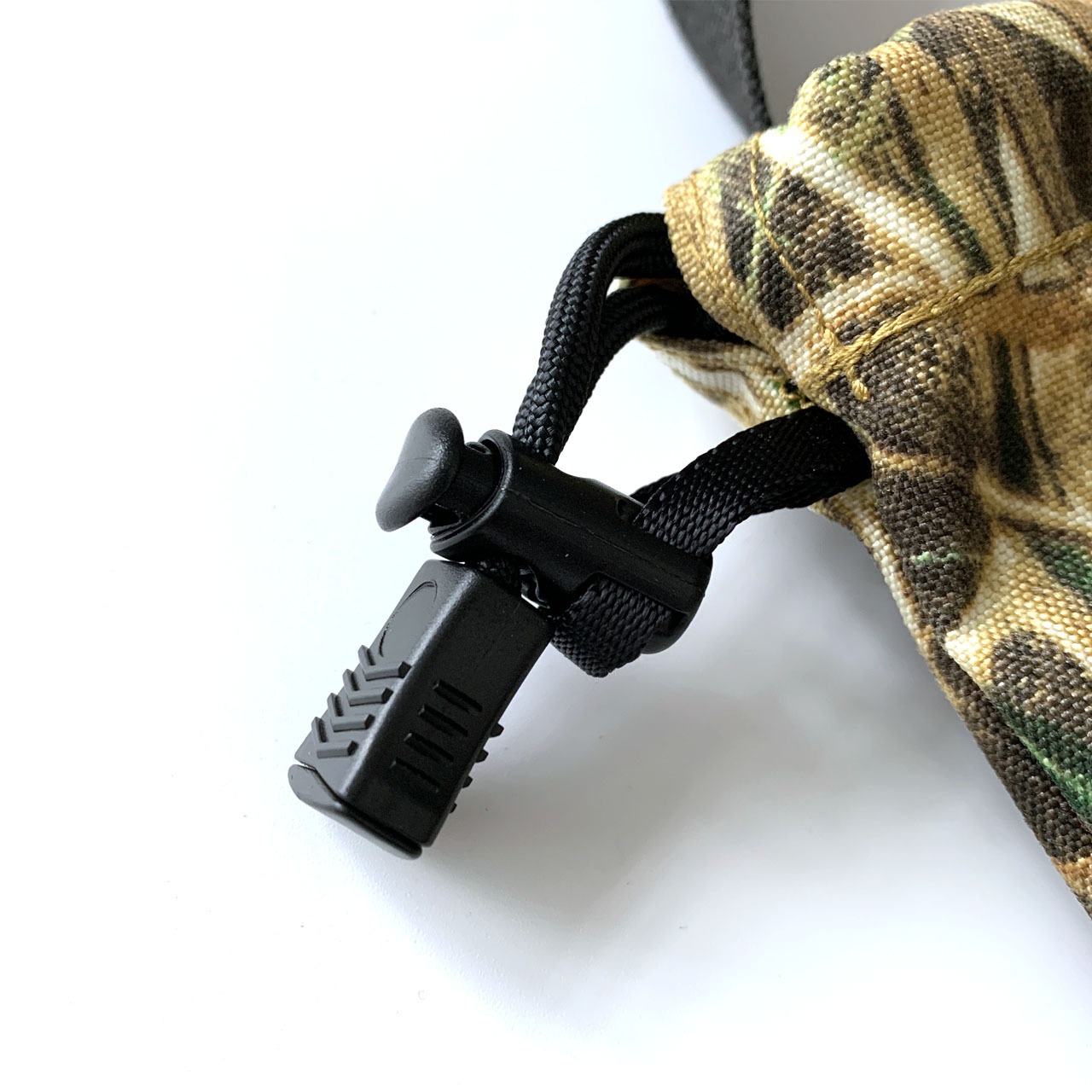 生地が薄くなったことによる対策としてMIL-SPEC WOODLAND CAMO で使用した厚手の高密度ナイロンテープを内側のパイピングに使用することでバッグのラウンド形状をキープできるようにしております。