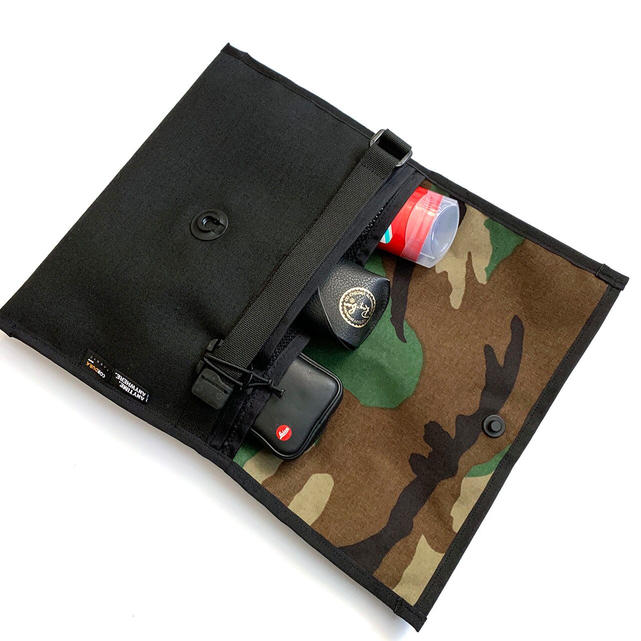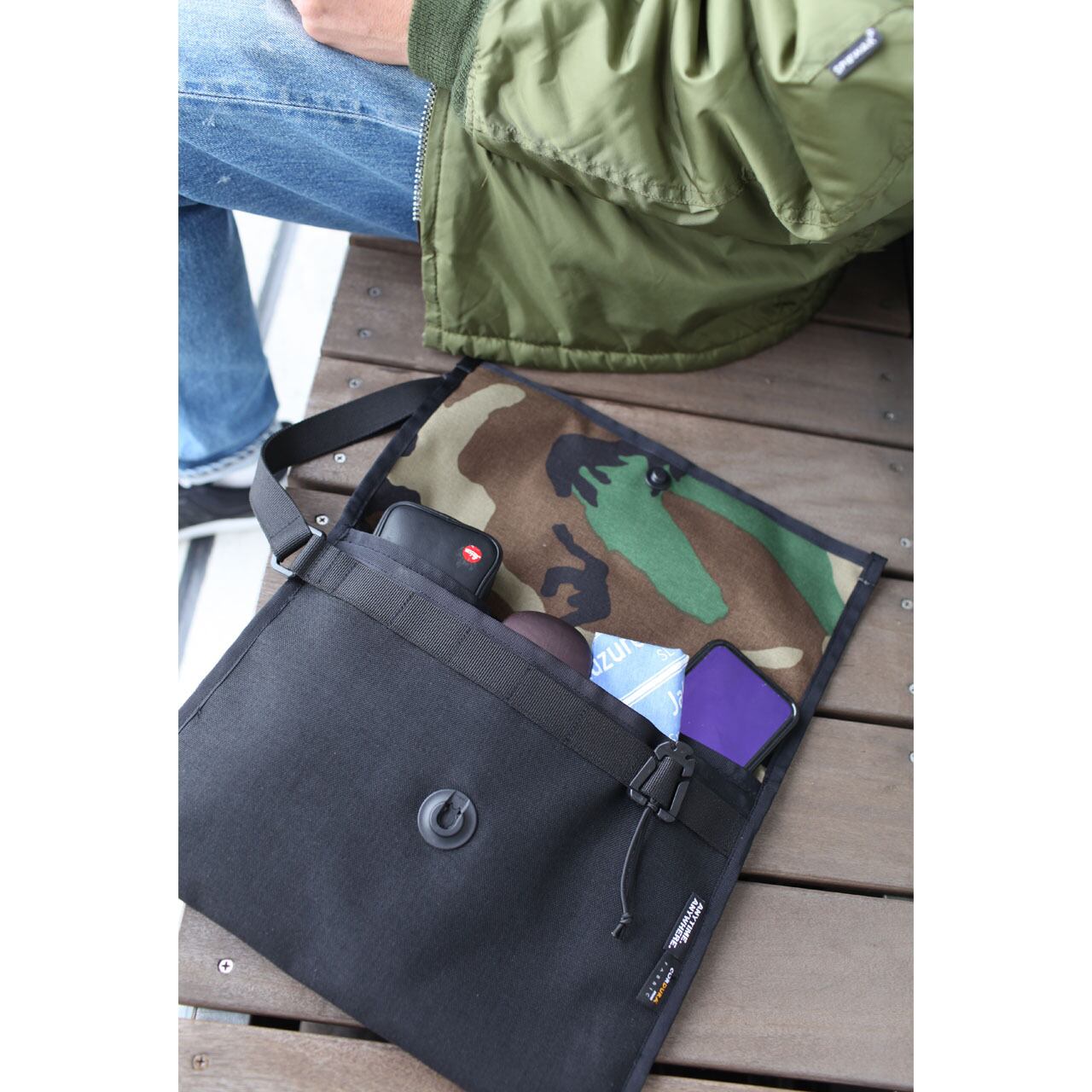 またこのバッグにはITWウェブドミネーターにより収納された1inchウェビングのハンドベルトを出すことで手首でぶら下げたり、小脇に抱えることができるセカンドバッグとしても使用できます。