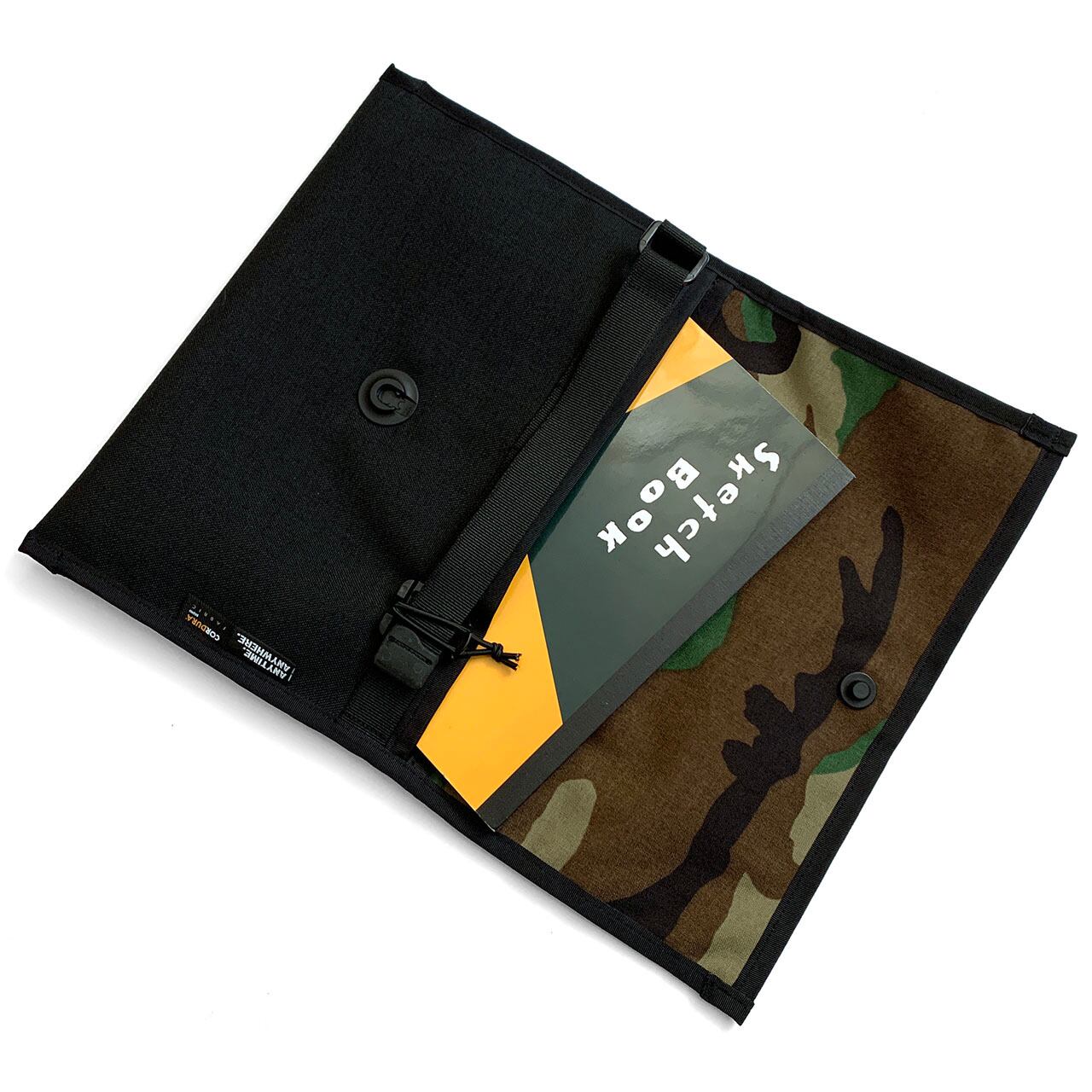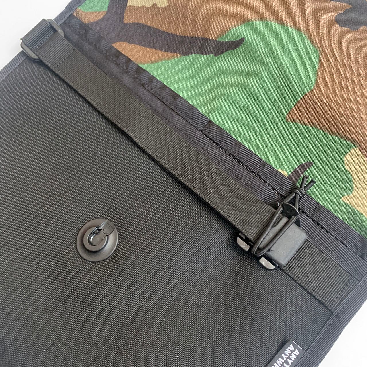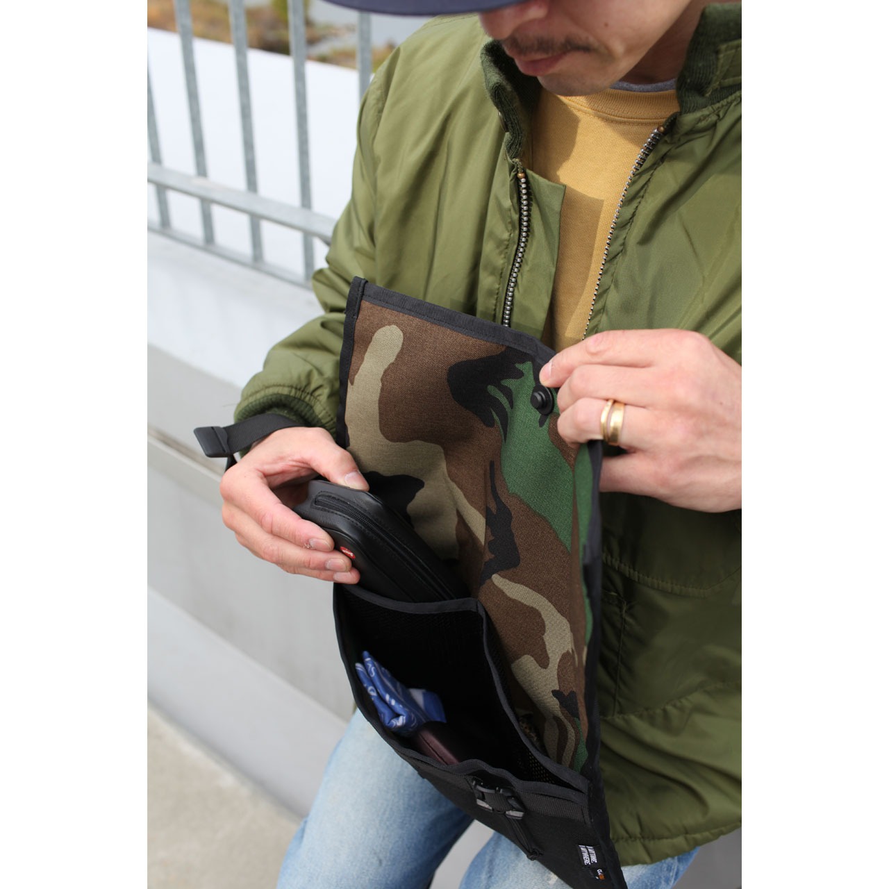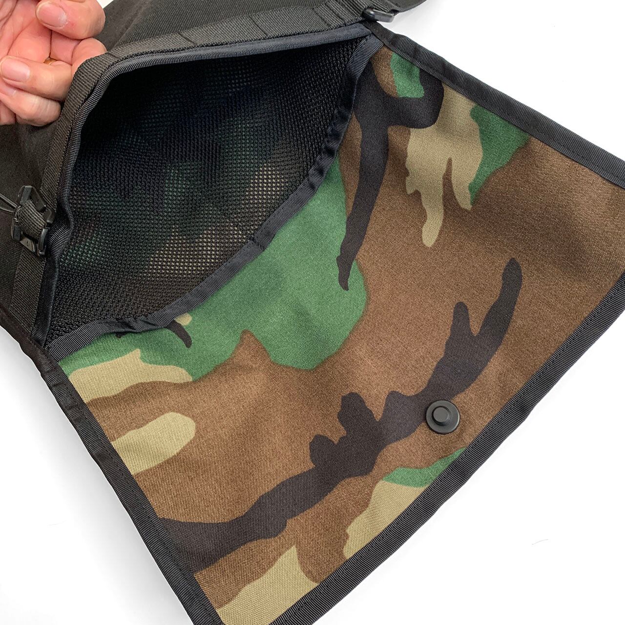 裏地は表地同様にDWRコーティング(耐久性撥水)とIR(赤外線)処理されたCORDURA ®︎500D MIL-SPEC WOODLAND CAMOを使用しました。