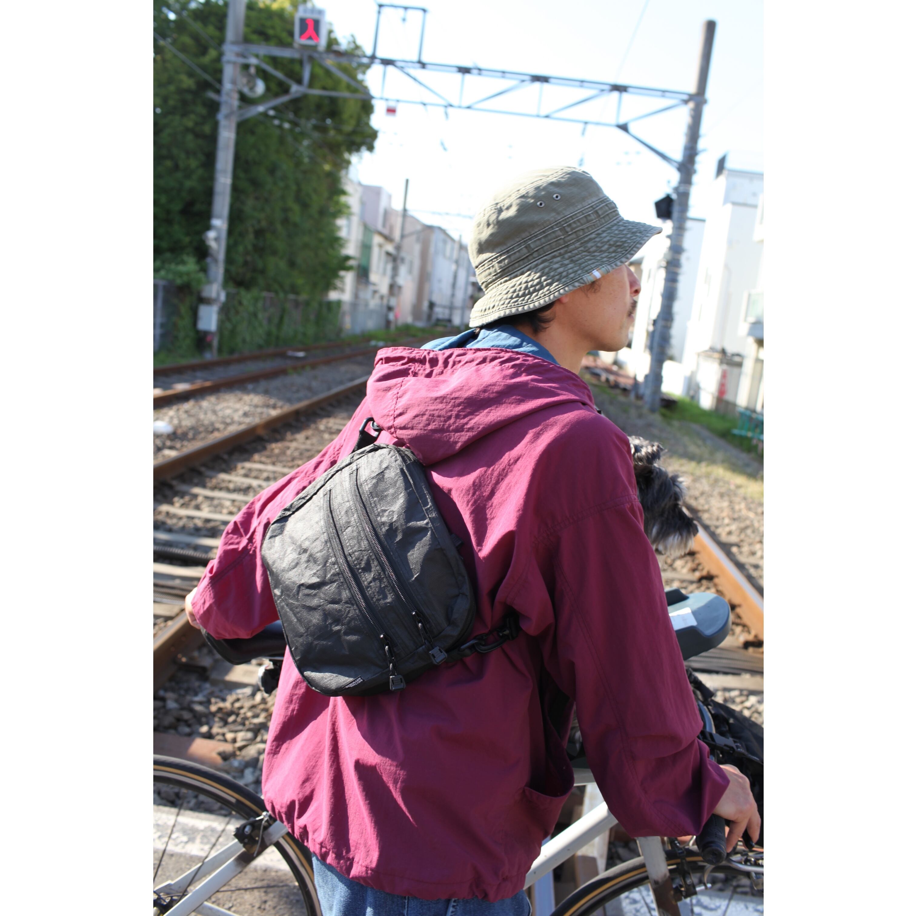 これは製作者が10代前半に使っていたSh◯rty’sのデイパックのフロントポケットのデザインと使い勝手が好きすぎてオマージュを込めてショルダーポーチへと変化させたものです。